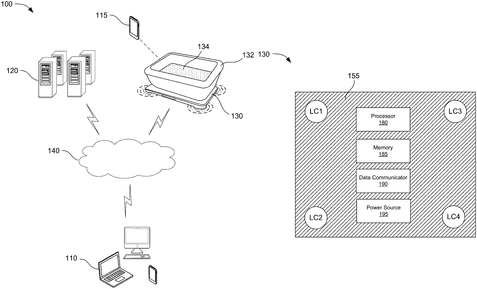 … based on animal interaction with the contained litter to determine a movement pattern for the animal, the movement pattern comprising distance covered, speed, acceleration, direction of movement, alignment, distance from an entry point into a litter box positioned on the platform to the center of …